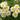 Махровые, шаровидные белые со светло-зеленым оттенком цветы собраны в небольших соцветия. Цветение в течение всего сезона